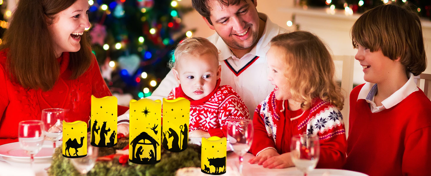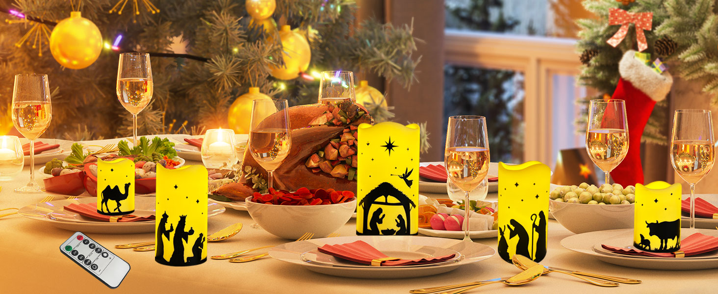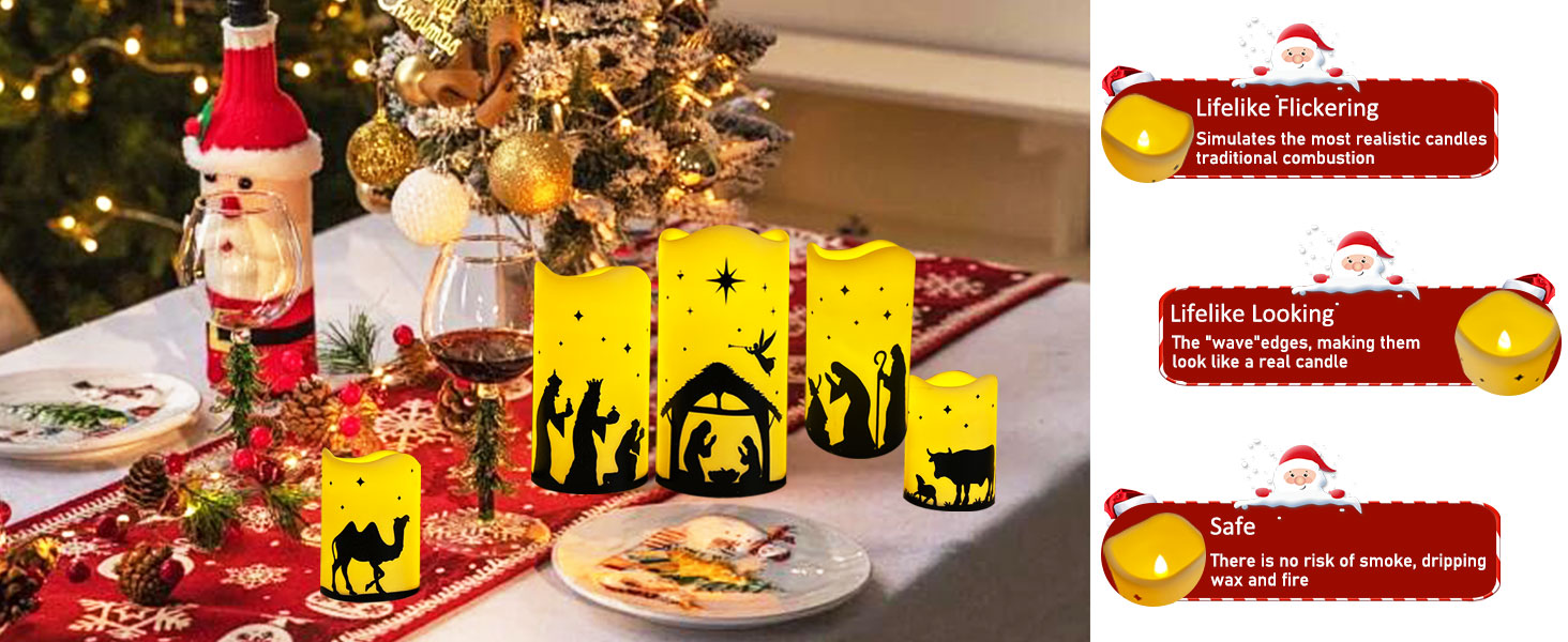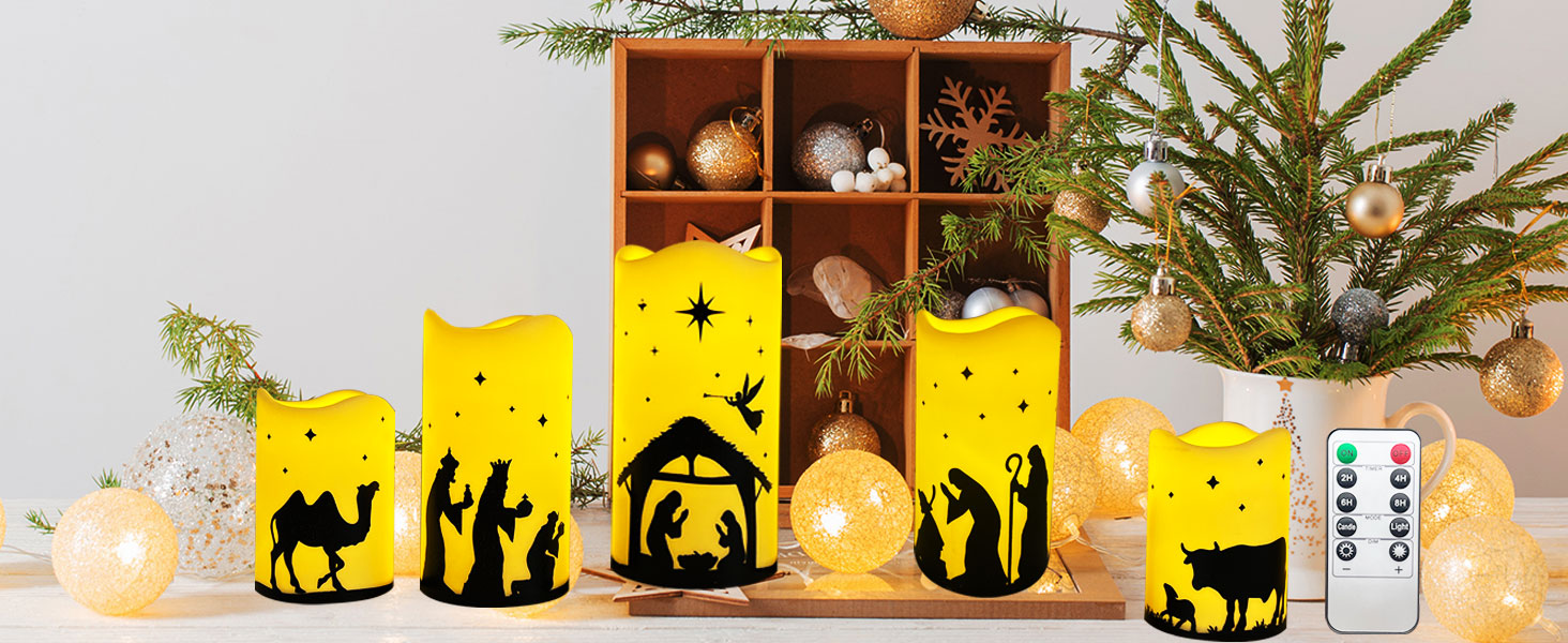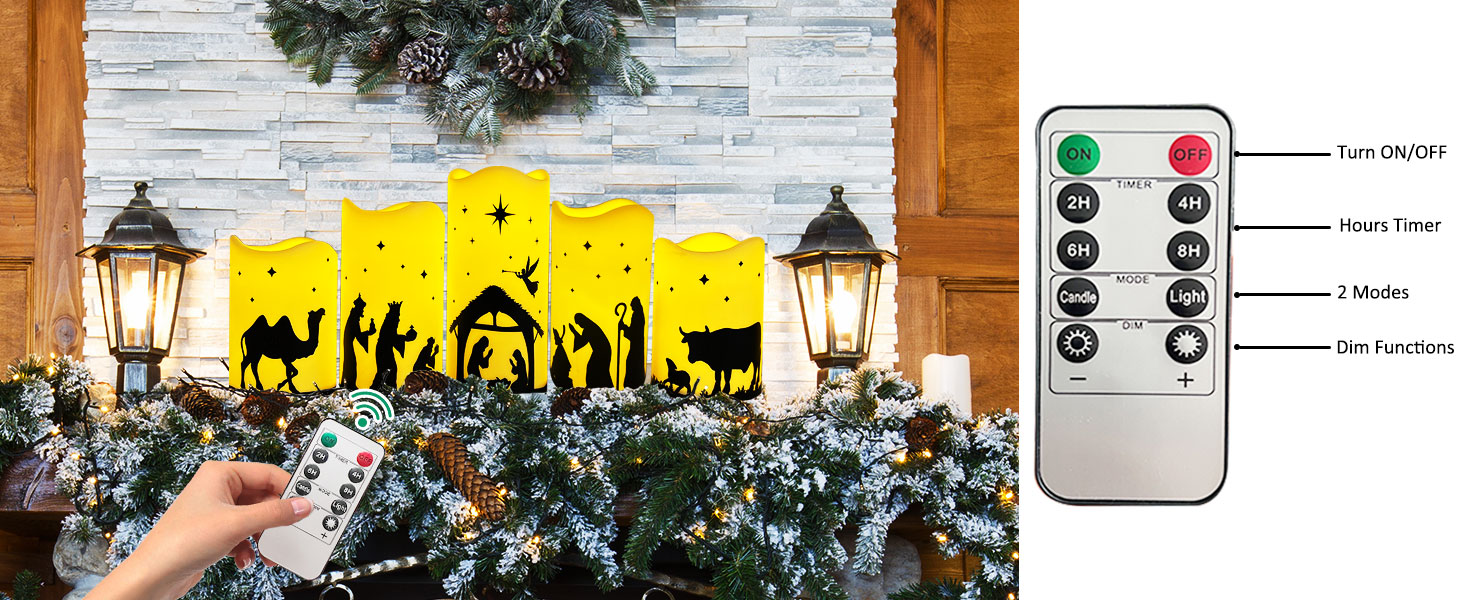 Flameless LED Christmas Nativity Scene Candles with Remote