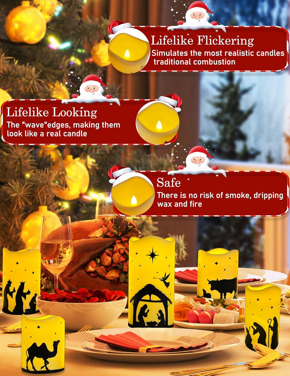 5 Pcs Flameless Christmas Nativity Scene Candles with Timer, Nativity Scene Set Candles Christmas Decorations Indoor Outdoor, Flickering LED Religious Candle for Home Holiday Decor