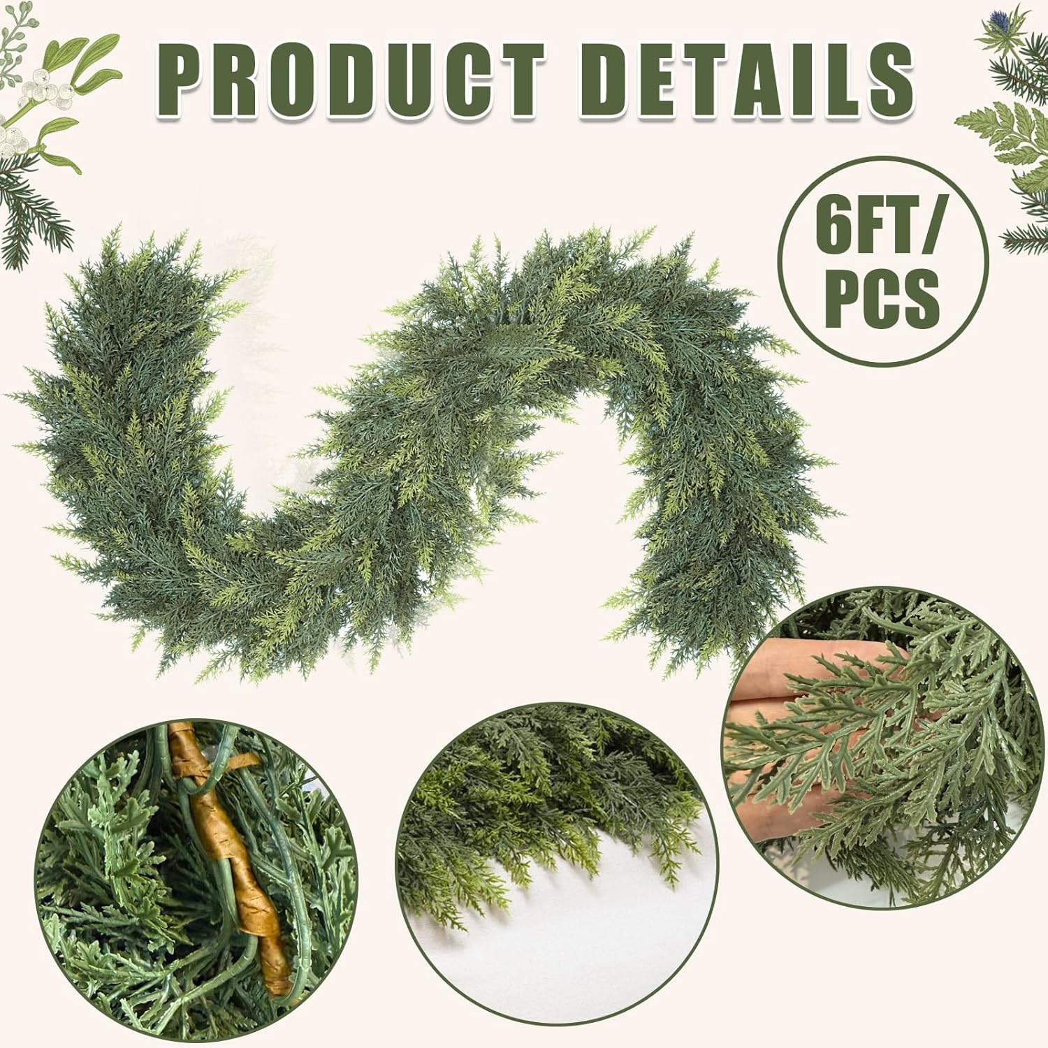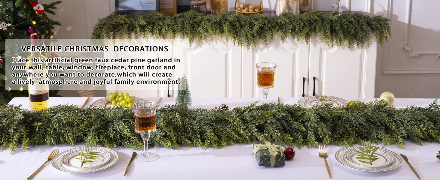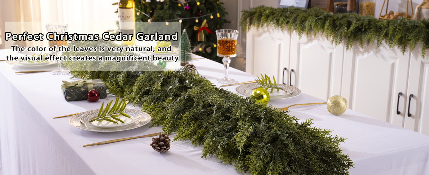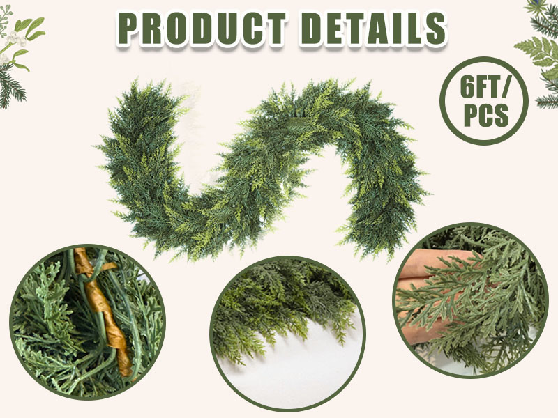 6 Ft Christmas Cedar Garland, Realistic Faux Pine Garlands, Green Artificial Greenery Garland for Winter Home, Mantle, Fireplace, Indoor, Outdoor Christmas Decorations (1Pcs)