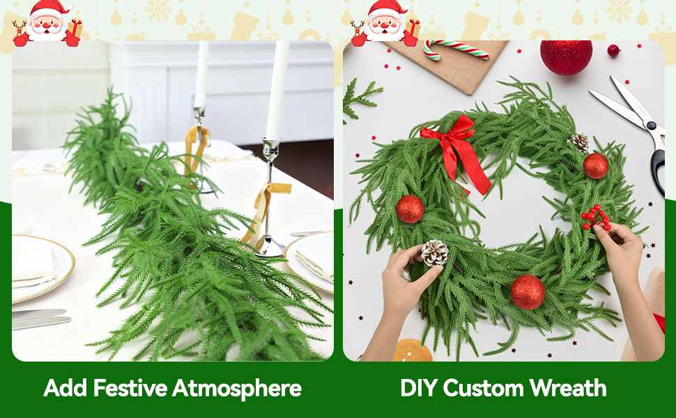 Merry Christmas! Featuring ultimate flexibility, this Norfolk Pine wreath can be shaped to fit any space. Personalize it by adding berries, pinecones, and other accessories to create your own holiday decoration.