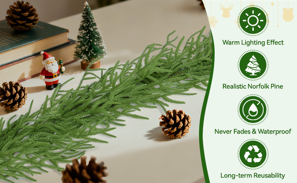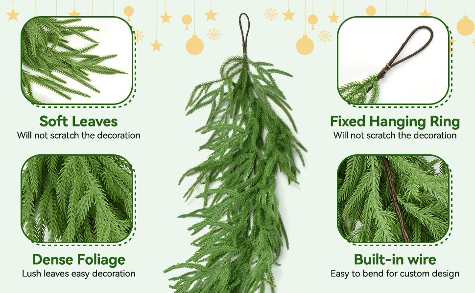 The green leaves and brown stems perfectly replicate the look and feel of a real Norfolk pine tree, adding a natural and festive touch to your home.