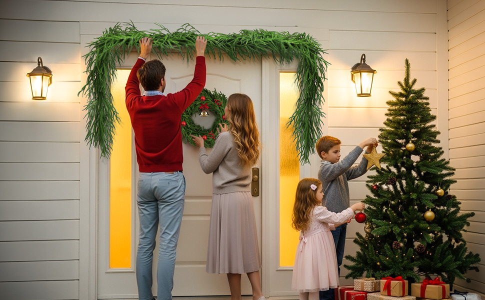 ● To restore the mantle garland's optimal appearance after transport, simply manually adjust the pine branches.