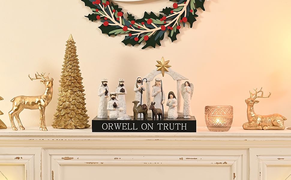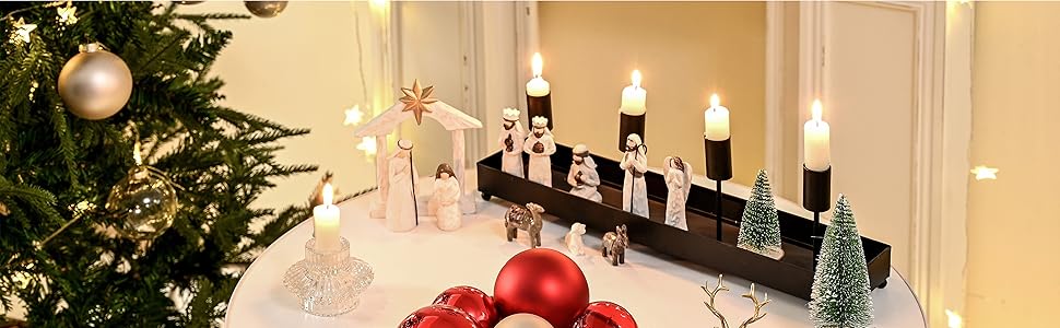 The Christmas nativity scene will highlight your holiday tabletop centerpiece, witnessing the festival joyful moment of your family.